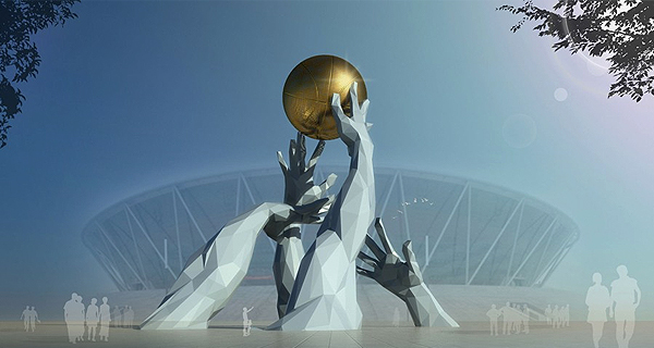 中神亞公司設計制作的東莞籃球城市雕塑《眾志拼搏》落成